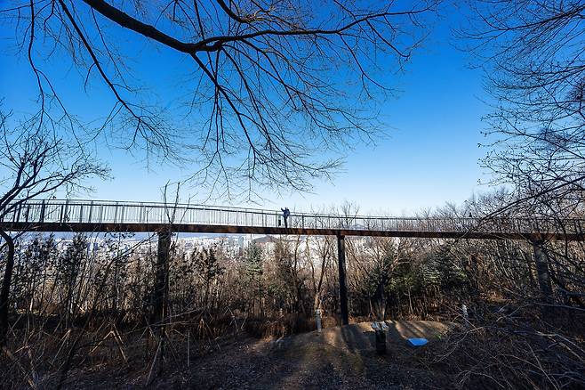 '์์ธ๋๋ ๊ธธ 2.0' ์ฝ์ค์ ์๋ก ์ถ๊ฐ๋ โ์ฉ๋ง์ฐ ์ค์นด์ด์ํฌโ. ์ฒ ์๋ฅผ ๊ฑท๋ ๋ฏ ๋์ธ ํ๋ฐฉ๋ก์์ ์์ธ ๋๋ถ๋ถ ์ผ๋๊ฐ ํ๋ ธ๋ผ๋ง ์ ๋ง์ผ๋ก ํผ์ณ์ง๋ค. ๋ฌ์ญ ์๋ก๋ ํ๋ฐฉ๋ก๊ฐ ์ง๋๋ค. / ์์์ด ์์๋ฏธ๋์ด ๊ธฐ์